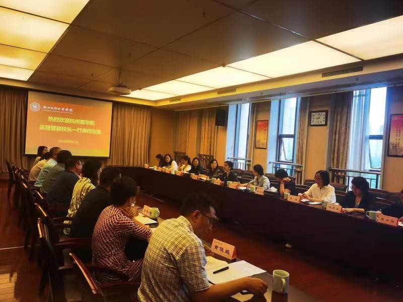 为了学习和借鉴省内高校迎接本科教学工作合格评估的经验,进一步推进我校本科教学合格评估工作,6月1日上午,我校副校长吴丽慧带领教务处、发展规划处、人事处、学生处、宣传部、计划财务处、实验室与资产管理处、后勤服务与采购中心和教师教学发展中心等各部门负责人一行12人赴浙江水利水电学院进行考察学习,浙江水利水电学院副校长徐金寿及相关二级单位负责人热情接待了我校一行。
