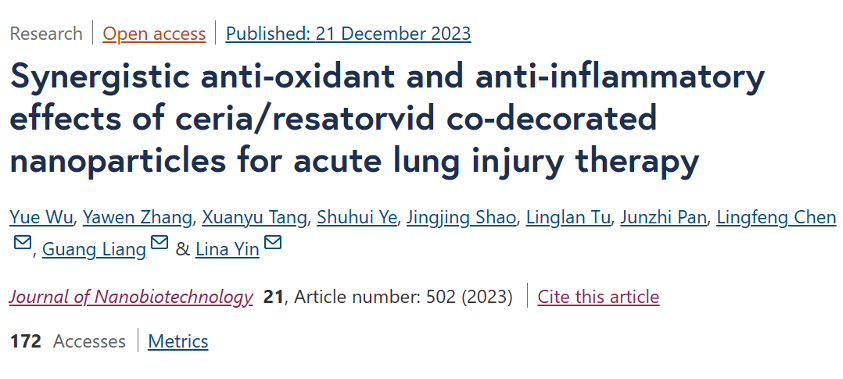 近日,日韩欧美福利视频_黑人巨大人精品欧美三区_欧美成人另类人妖_欧美在线精品一区二区三区_欧美一区二区三区性视频_日韩精品欧美视频_性欧美极品xxxx欧美一区二区梁广/尹丽娜团队在《Journal of Nanobiotechnology》(中科院一区TOP,IF=10.2)发表了题为“Synergistic anti-oxidant and anti-inflammatory effects of ceria/resatorvid co-decorated nanoparticles for acute lung injury therapy”的研究性论文。该研究设计了一种具有ROS触发释药性能的共载纳米递药系统,可同时递送氧化铈纳米颗粒(Ce NPs)和TLR4抑制剂瑞莎托维(RT),协同发挥抗炎、抗氧化作用从而实现急性肺损伤的安全、高效治疗。该联合治疗系统可为治疗急性肺损伤等炎症相关疾病提供新的思路和理论依据。