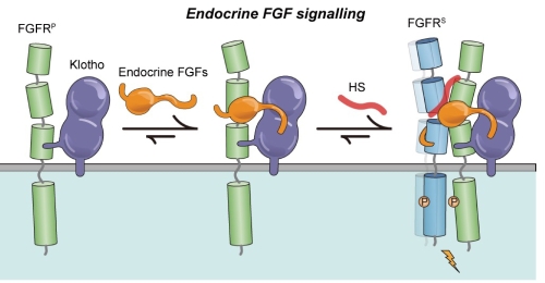 图2.内分泌型FGF诱导FGFR信号通路机制示意图