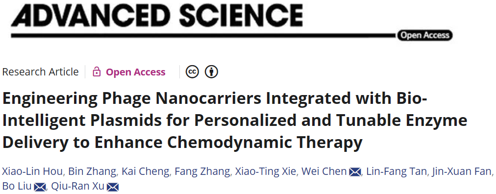 4月6日,日韩欧美福利视频_黑人巨大人精品欧美三区_欧美成人另类人妖_欧美在线精品一区二区三区_欧美一区二区三区性视频_日韩精品欧美视频_性欧美极品xxxx欧美一区二区许秋然研究员课题组联合华中科技大学刘波教授课题组在国际权威期刊《Advanced Science》(中科院一区TOP,IF=15.1)发表题为“Engineering Phage Nanocarriers Integrated with Bio-Intelligent Plasmids for Personalized and Tunable Enzyme Delivery to Enhance Chemodynamic Therapy”的研究论文。该研究将适应性强的T4噬菌体载体与生物智能质粒无缝整合,为肿瘤治疗提供了一种有前途的方法。许秋然研究员为论文的末位通讯作者,华中科技大学刘波教授为论文共同通讯作者,论文通讯单位为日韩欧美福利视频_黑人巨大人精品欧美三区_欧美成人另类人妖_欧美在线精品一区二区三区_欧美一区二区三区性视频_日韩精品欧美视频_性欧美极品xxxx欧美一区二区。