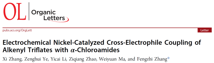 2024年7月23日,日韩欧美福利视频_黑人巨大人精品欧美三区_欧美成人另类人妖_欧美在线精品一区二区三区_欧美一区二区三区性视频_日韩精品欧美视频_性欧美极品xxxx欧美一区二区张逢质/张茜团队在国际权威期刊《Org. Lett.》(中科院一区,IF=4.9)上在线发表了题为“Electrochemical Nickel-Catalyzed Cross-Electrophile Coupling of Alkenyl Triflates with α‑Chloroamides”的研究论文。